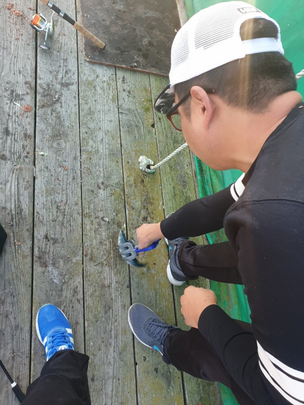 좌대에서 갑오징어가 잡히기 시작했어요~~